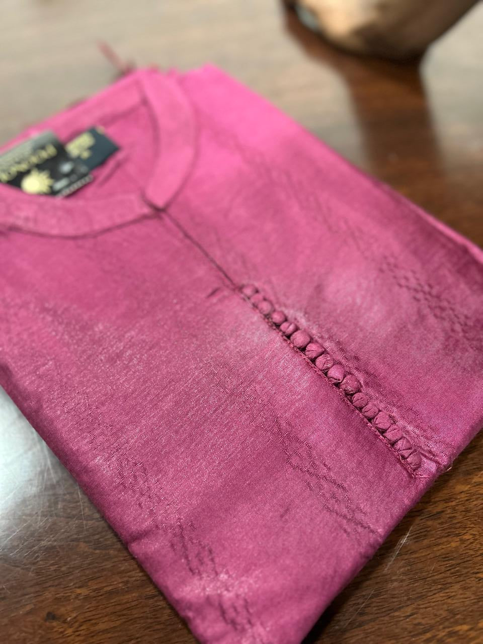 Dark Pink color Semi tussar material with self print thread design on body dupatta same color with design same color bottom