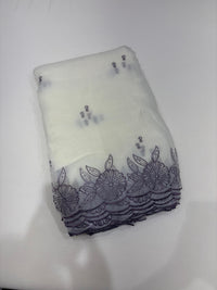 white color on base organza fabrics with onion Lavender color thread work on body and borders
