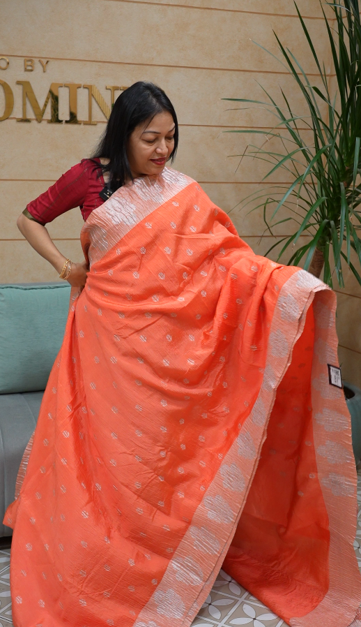 crushed Banarasi sarees -light orange color Search code2283