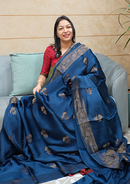Banarasi satin sarees -peacock blue color Search code 4502