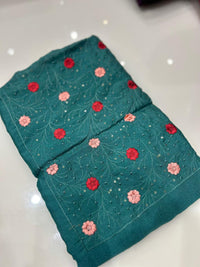 Blue color suit set with multi color thread design on yoke portion same color with thread design same color bottom