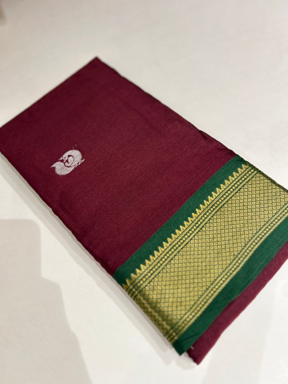 KANCHI COTTON SAREE -Maroon to Green shade Search code 6807