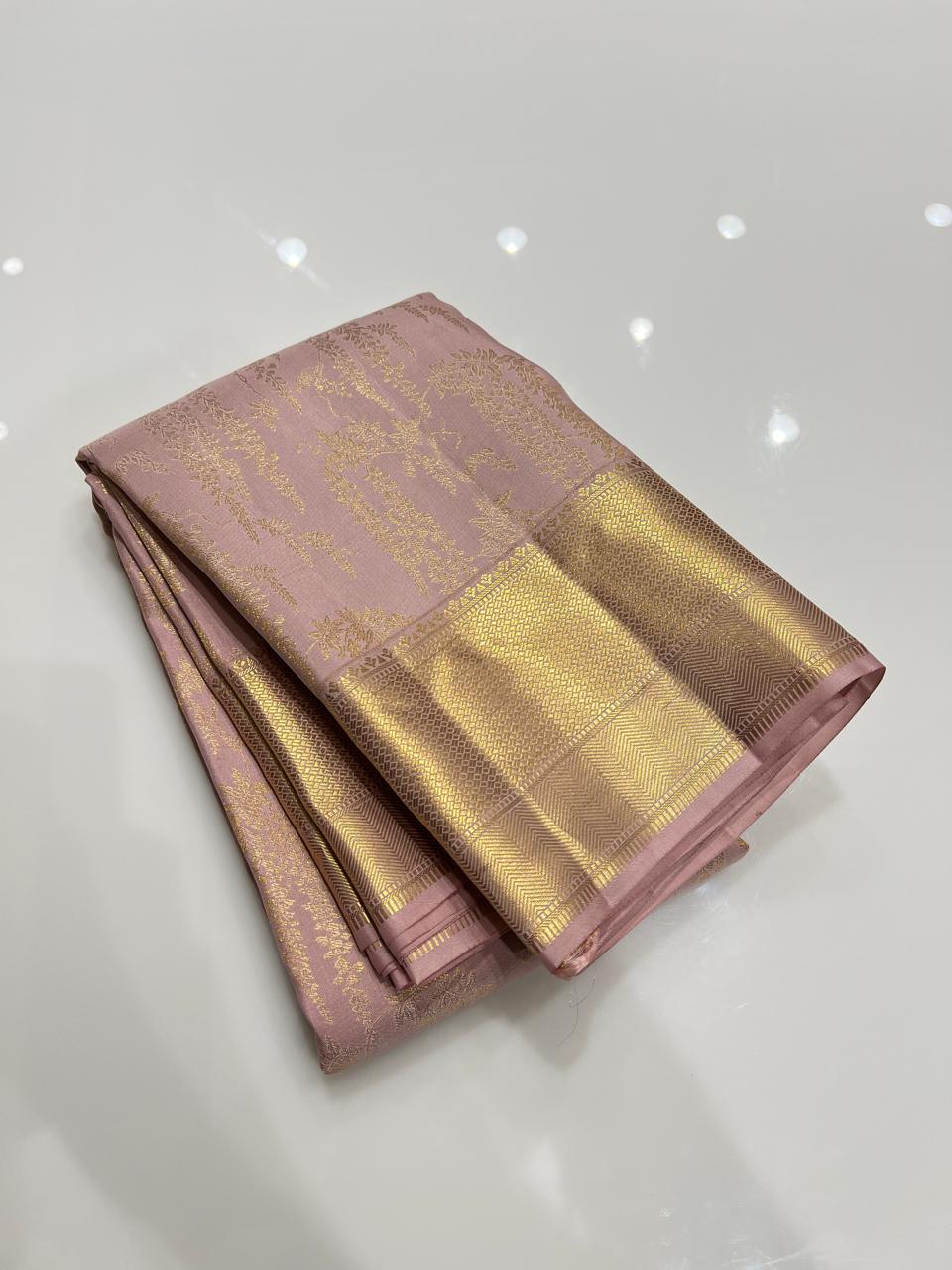 Pink color saree with rich zairy design on body and rich work on borders and pallu
