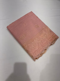 Light Peach color net cotta saree with rich cross stitch design on one border and thread design on body