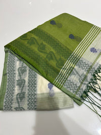 Off white to Green shade saree with small design on body and rich green color on pallu