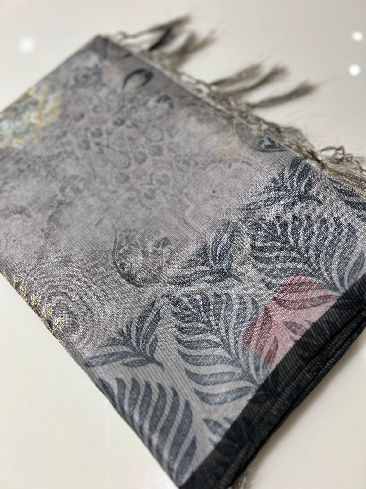 Net Cotta Saree- Gray shade Search code 7241