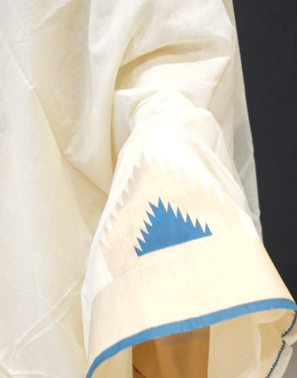 color mal chanderi saree with rich golden design on body with till blue color temple borders on border