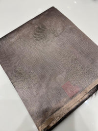 Brown shade saree with rich charcoal zairy design on body and stripe like design on body