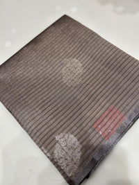 Brown shade saree with rich charcoal zairy design on body and stripe like design on body
