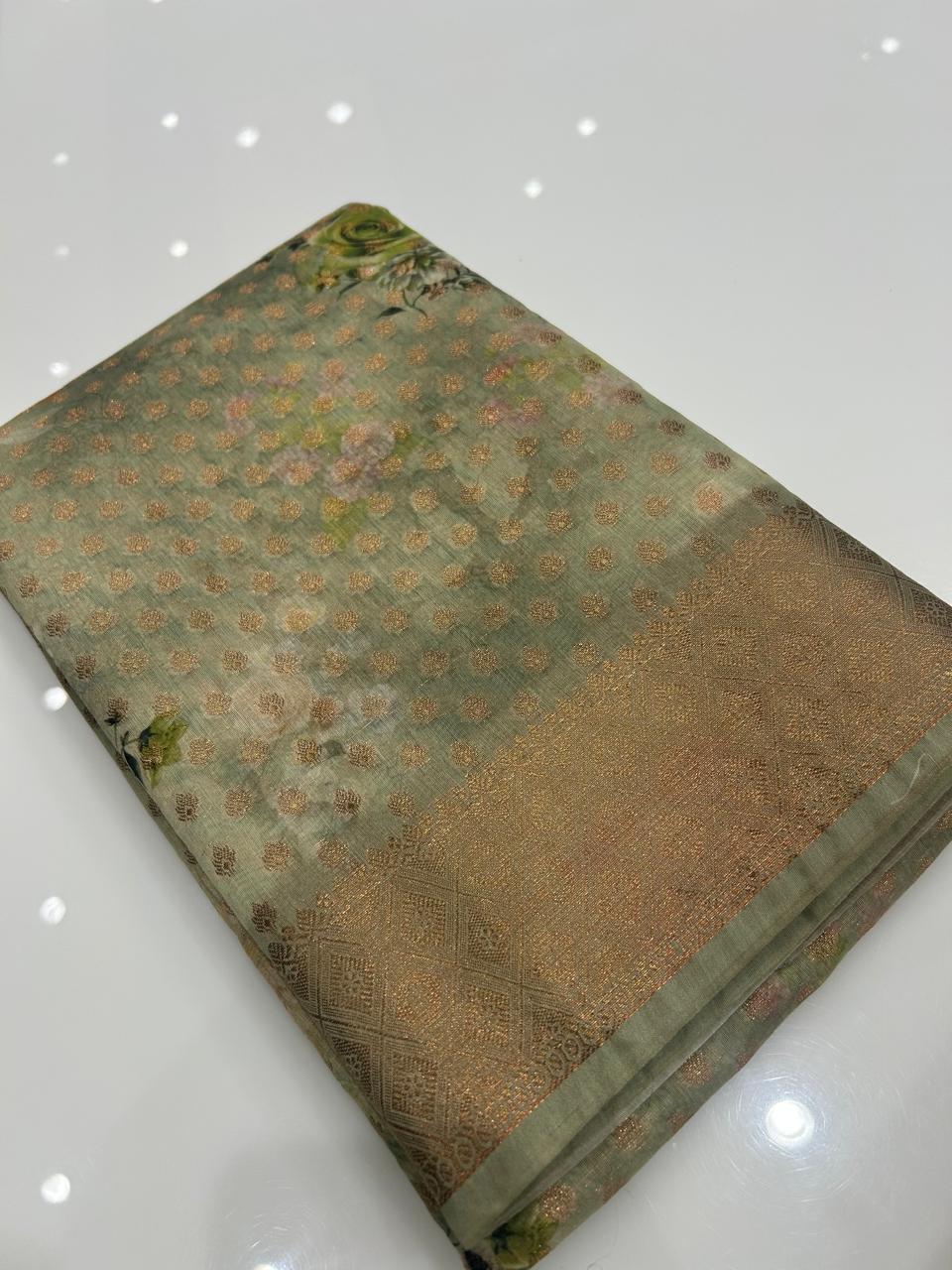 Green color banarasi saree with rich golden butta on body and rich design on borders, floral prints on body ,pallu rich zairy design ,blouse full brocade