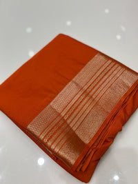 Orange color saree rich golden zairy design on borders and body plain