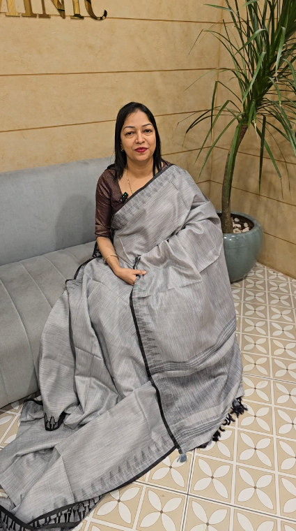 Khadi Cotton Saree - ash shade Search code 8006