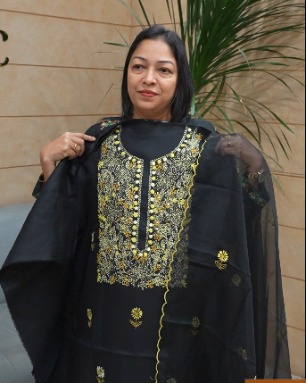 UNSTITCHED SALWAR SUIT SET BLACK YELLOW shade Search code 5560