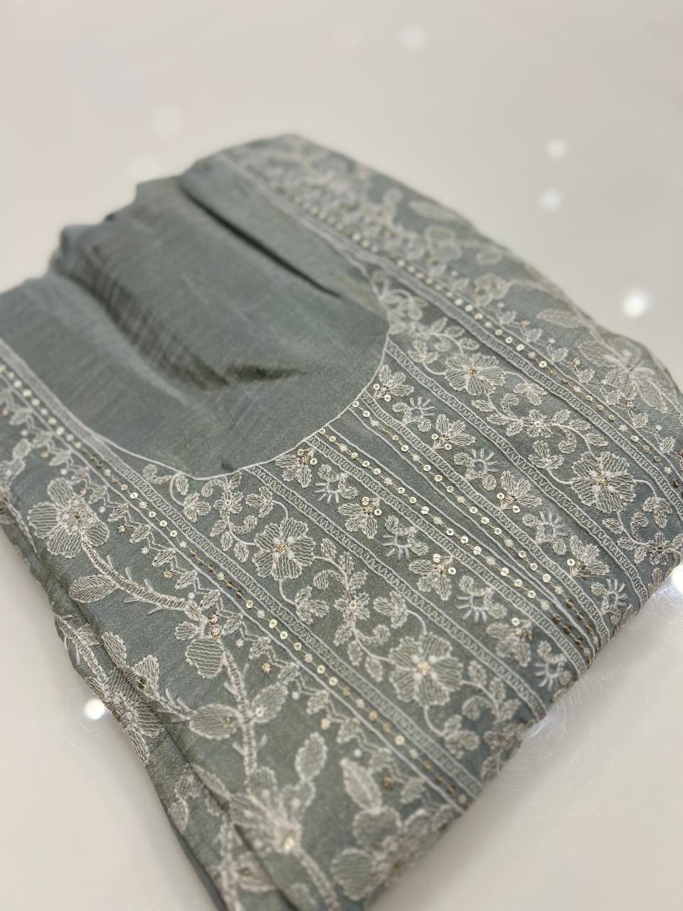 UNSTITCHED SALWAR SUIT SET -Dusty blue Search code 7969