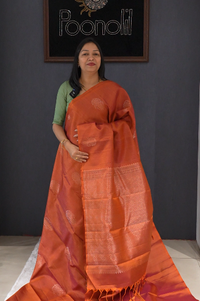 KANCHIPURAM SAREE -Brick shade Search code 5650