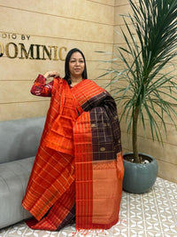 KANCHIPURAM SAREE -Dark coffee and orange shade Search code 8000