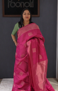 KANCHIPURAM SAREE -Reddish pink shade Search code 5657