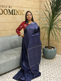 saree with rich jute weaving design on body and contrast border Red color with golden zairy design blouse plain