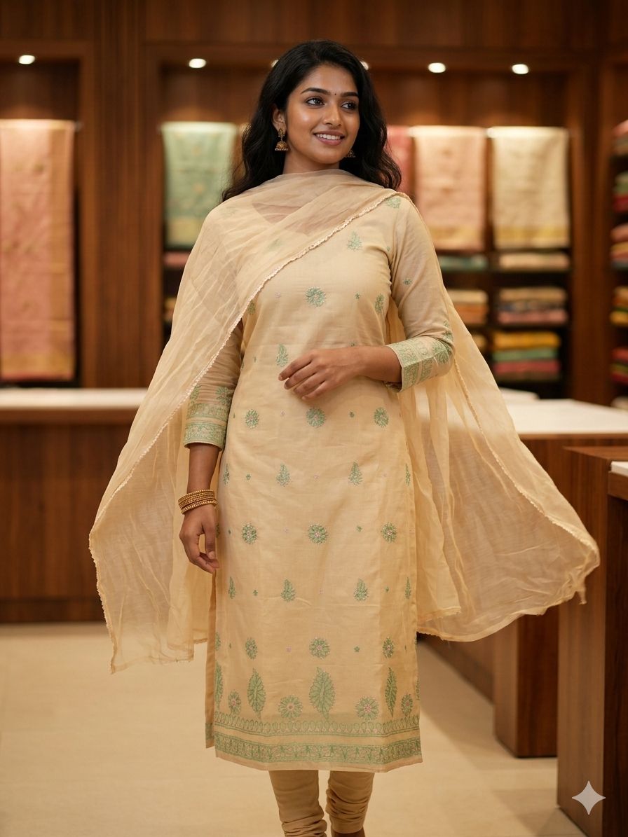 This Cotton masterpiece features intricate hand-embroidery that captures the light with every movement. Designed for the woman who values 'Slow Fashion' and the timeless beauty of Indian craft.