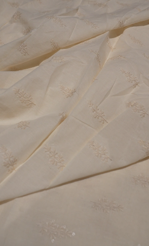 off white cream shade cotton material with thread work and sequence work