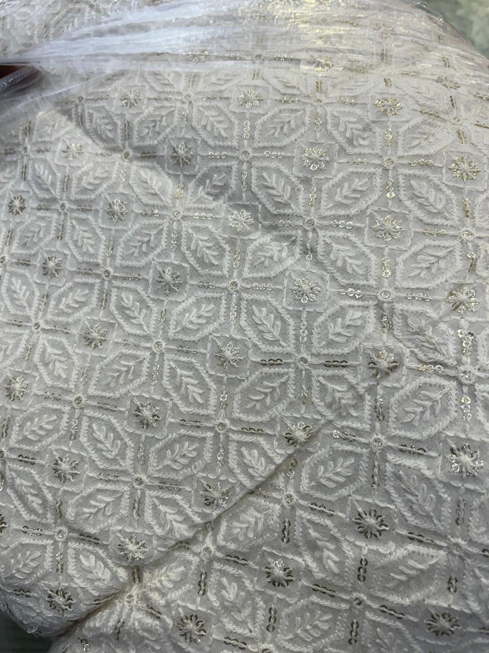 Off white Dyable running material with rich thread and hand work