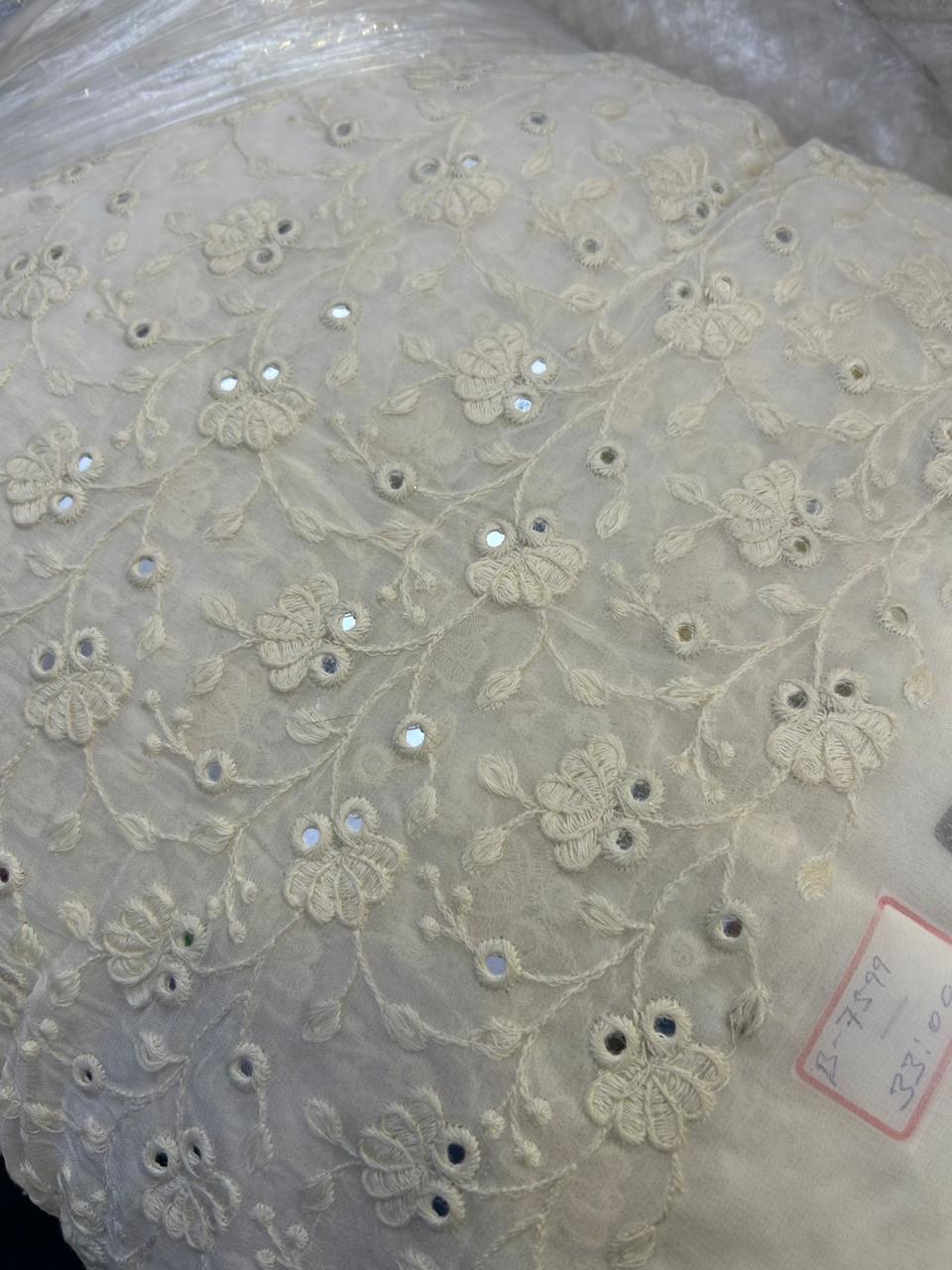 Off white Dyable running material with rich thread and hand work