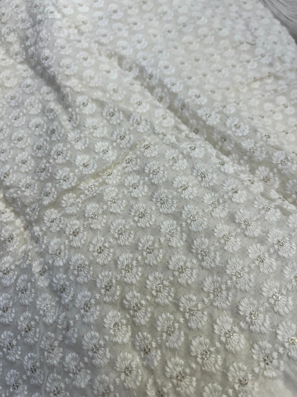 Off white Dyable running material with rich thread and hand work