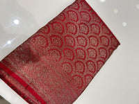 Red color semi banarasi saree with antic golden zairy design whole body and pallu blouse plain with imposing design